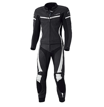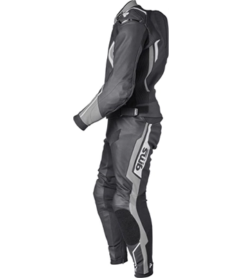 Sportlicher Lederkombi mit herausnehmbaren aerodynamischen Rückenhöcker.